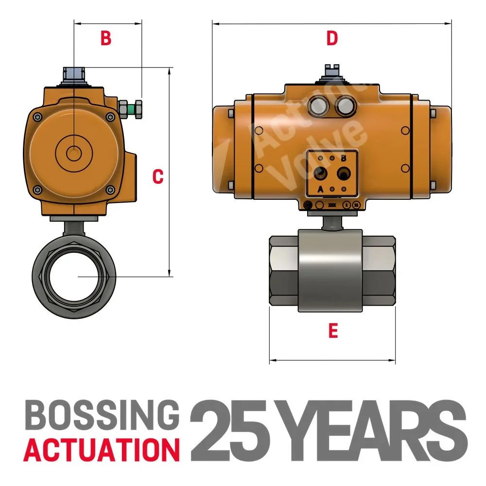 The BV4500EL, a two-piece full bore brass ball valve, provides a space-efficient and economical actuated valve option for screwed and threaded pipelines. It has WRAS approval, making it suitable for use with potable drinking water. The ISO 5211 mounting pad enables valve actuation without requiring a mounting bracket, allowing for immediate processing of assembly and testing procedures upon placing your order. Express shipping is available for the delivery of stock components within 24-48 hours. WRAS approval certificates are included with all assemblies at no additional cost.
