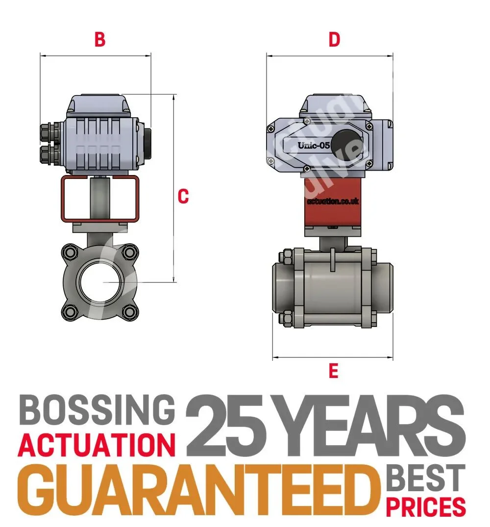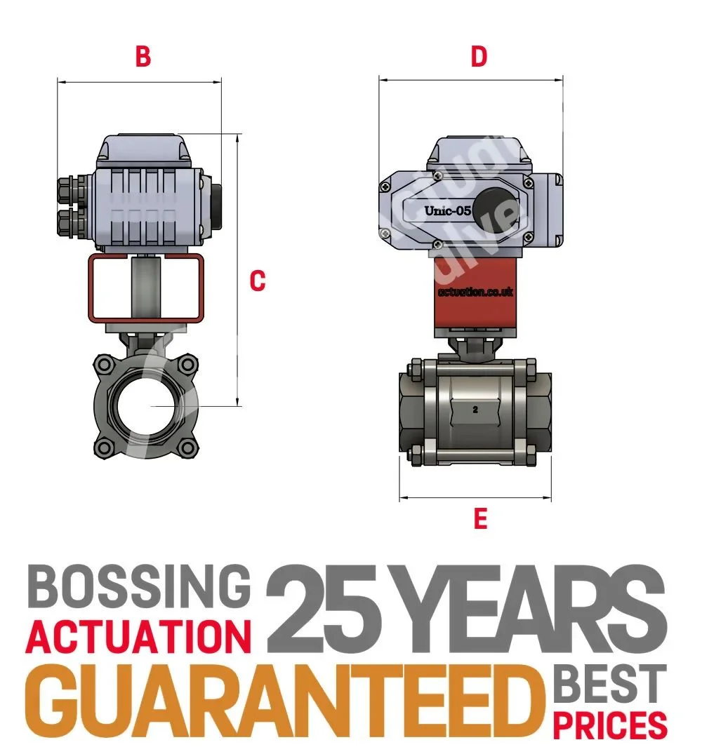 The BV-L3000EK, 3100EK, and 3200EK actuated ball valves are integral to Actuation Valve's range of 3 piece stainless steel standard valves. These units feature a dropout centre section that can be fully maintained without the necessity of complete valve removal, making them ideal for routine maintenance and seat replacements. They come with various certifications, including FDA and WRAS approved seats, as well as DNV/Lloyds certifications. Additionally, provided free of charge are a Certificate of Conformity and a detailed two-page assembly and Calibration Certificate. Each unit is assembled and tested in-house before dispatch.