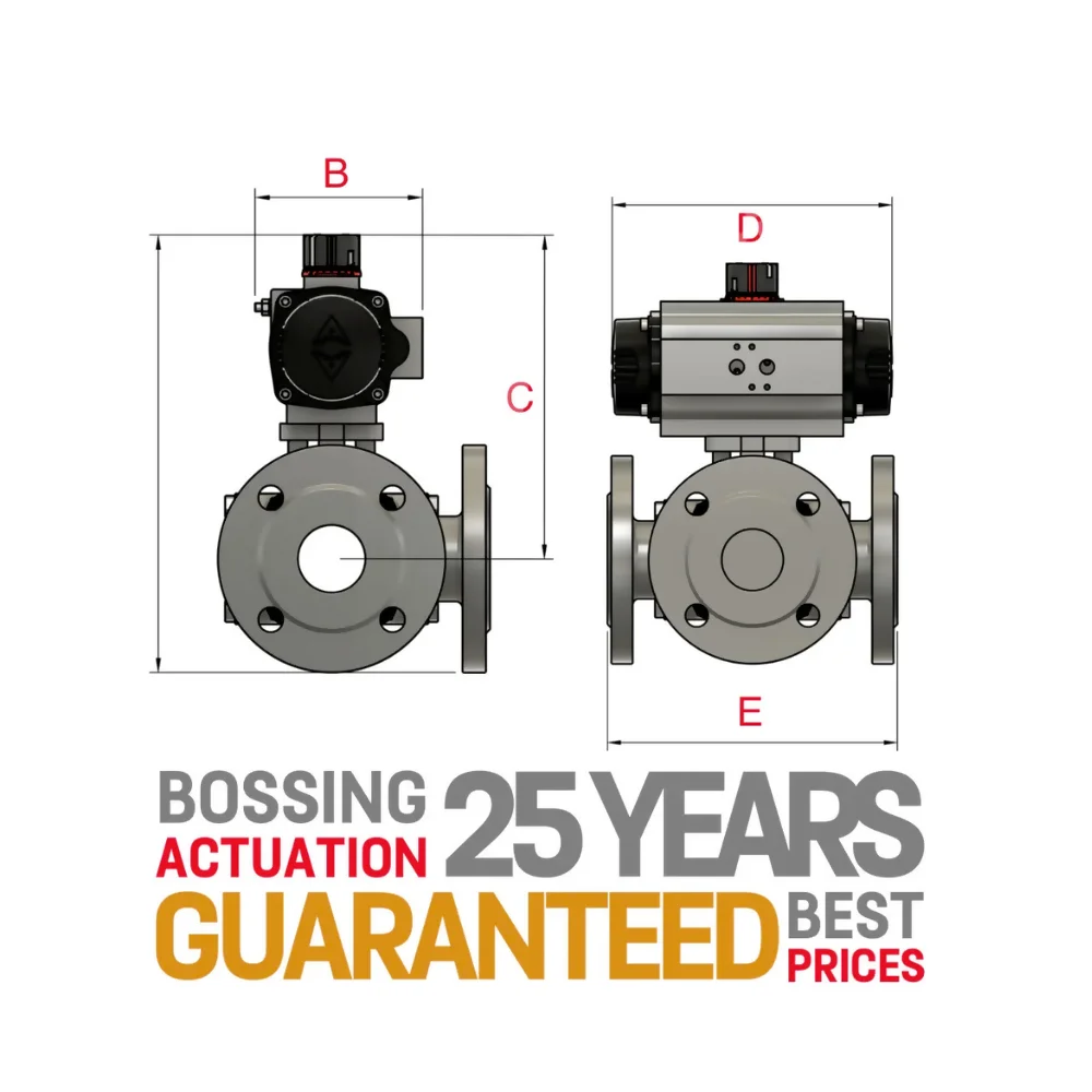 The BV-L5K00 & 5N00 represents an affordable range of top-quality stainless steel ball valves that won't strain your budget. These robust products offer years of trouble-free operation, all at a fraction of the cost of similar items from other companies. Our stainless steel 3-Way ball valves come pre-tested, allowing for immediate installation. Additionally, you will receive a two-page test report detailing all opening and closing times once your order is complete. The Actreg Pneumatic Actuator is easy to install, compact in size, and impressively powerful. It's an ideal choice for applications where space is limited, yet automation requirements are substantial, such as in material handling systems and packaging machines.
