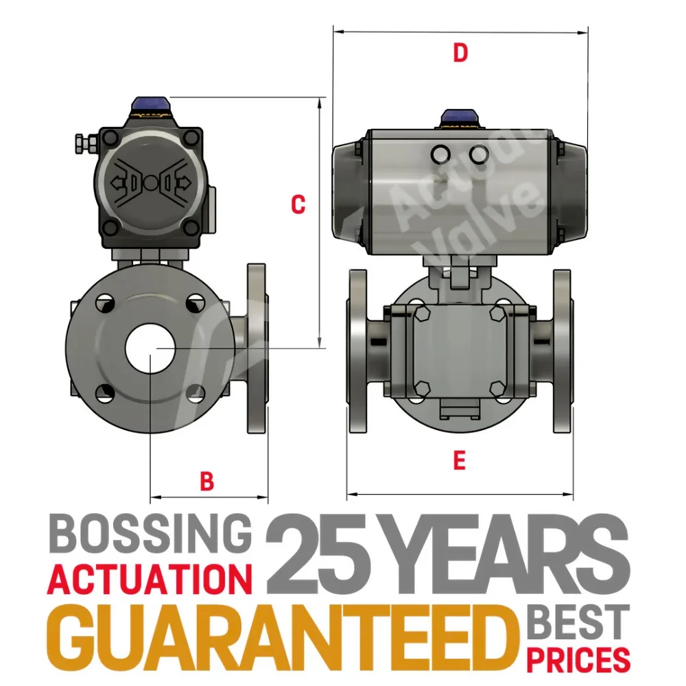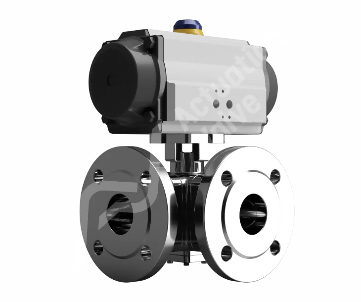 Our BV-L5K00AT/5N00AT 3-Way automated multiport ball valves offer diverse process diverting capabilities through L & T port ball designs. These flanged valves, rated at PN16 & PN40, accommodate both medium and high pressure needs, depending on your application. Installation is hassle-free. Pneumatic actuation options include fail-safe and fail-in-position setups with double-acting and spring-return units, which can be specified at the time of ordering. Air Torque Pneumatic Actuators deliver the same functionality as hydraulic actuators, at a significantly lower cost, while enhancing reliability and reducing maintenance expenses. This lightweight, compact device has been specifically engineered for valve applications.