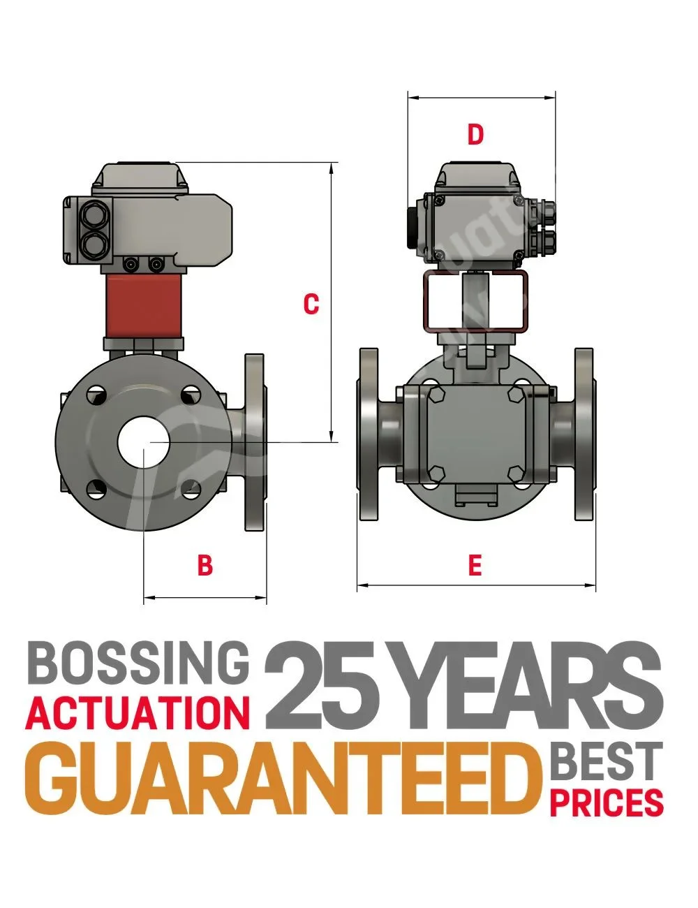 Our 3-Way stainless steel ball valves, already tested for immediate functionality, come with a comprehensive two-page test report showing all the opening and closing timings once your order is fulfilled. The BV-L5K00 & 5N00 3-Way Ball Valve is offered in two variations: L Port and T Port. The L Port can provide total shut-off depending on the type of actuator, while the T Port is designed for either diversion or continuous flow from one port to another. Equipped with a high-efficiency motor, this product operates efficiently between -25 and 55 degrees Celsius, maintaining its speed and energy efficiency. This electric actuator's capability to function in harsh conditions ensures it will meet your needs in demanding situations.