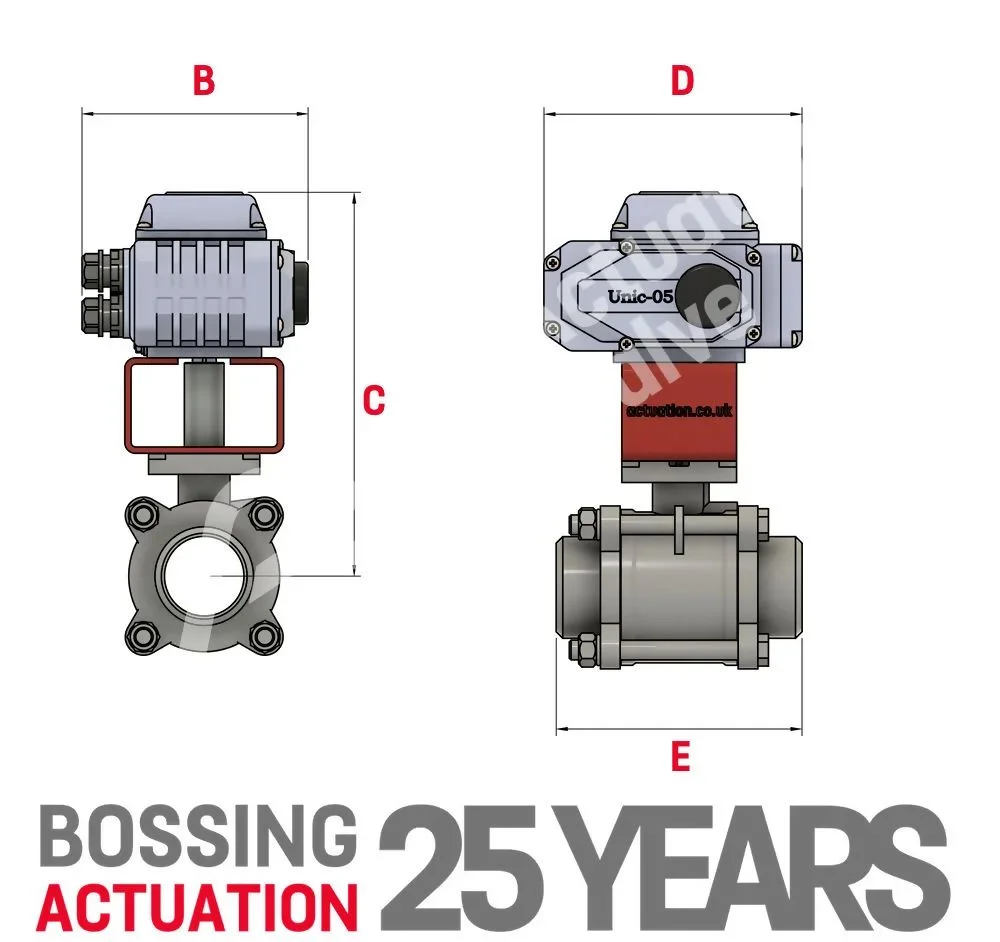 The BV-L8000FSEK, BV-L8100FSEK, and BV-L8200FSEK stainless steel actuated ball valves provide a more robust alternative to the standard range of 3-piece valves. They still feature a drop-out centre section that is fully maintainable without needing to completely remove the valve. These heavy-duty actuated ball valves offer higher pressure and temperature capabilities, making them commonly used in steam applications. The stainless steel body also affords extra protection against both internal and external corrosive factors in the process. Owing to its high-performance motor, this product can operate efficiently at temperatures of -25 to 55 degrees Celsius without compromising speed or power consumption. Its ability to function in extreme conditions ensures that this electric actuator will meet all requirements reliably when most needed.