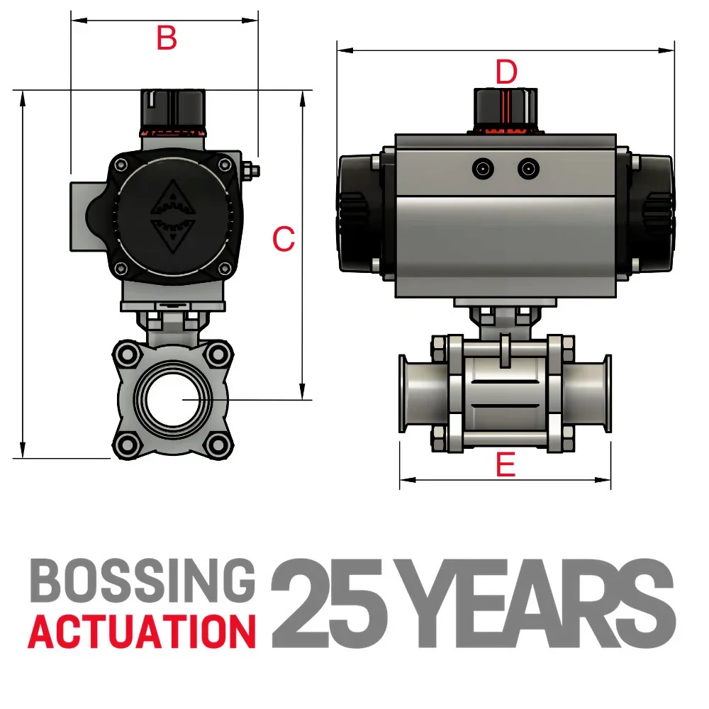 The Actreg Pneumatic Actuator features a specially coated steel piston and uses high-quality materials suited for challenging environments like dust, humidity, or dirt. It includes a 3-Way guide to minimise friction, enhancing the lifespan and dependability of the pistons. Designed for extreme conditions, the Actreg actuator operates effectively in temperatures ranging from -55ºC to 150ºC, thanks to specialised FKM and Silicone o’rings. It supports NAMUR mounting (VDE/VDI 3845) for straightforward integration with additional devices like solenoid valves and valve position monitors. BallValve also offers a selection of accessories for the actuator.