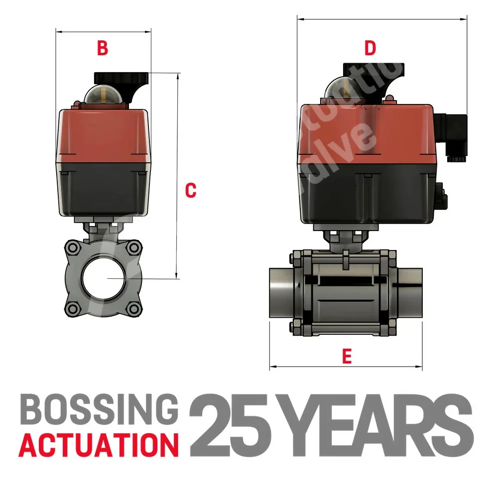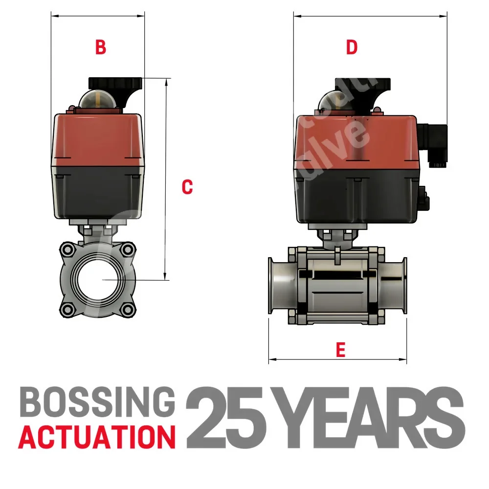 The BV-L91B0JJ & BV-L9CB0J are part of BallValve's sanitary and hygienic full bore actuated valve packages. These valves consist of a three-piece body with a swing-out centre section, which is ideal for scheduled maintenance and seat replacements. The full bore body design and seats filled with material prevent the accumulation of debris or contaminants. They can withstand temperatures of up to 200 degrees Celsius, making them suitable for steam cleaning, CIP, and SIS applications. These valves have received various approvals, including FDA and WRAS for the seats, ensuring a supply free from bovine-related concerns. J&J Electric Actuators offer password-protected diagnostics accessible via Bluetooth technology, providing end users with technical information about operations, current status, parameter readings, and functional errors.