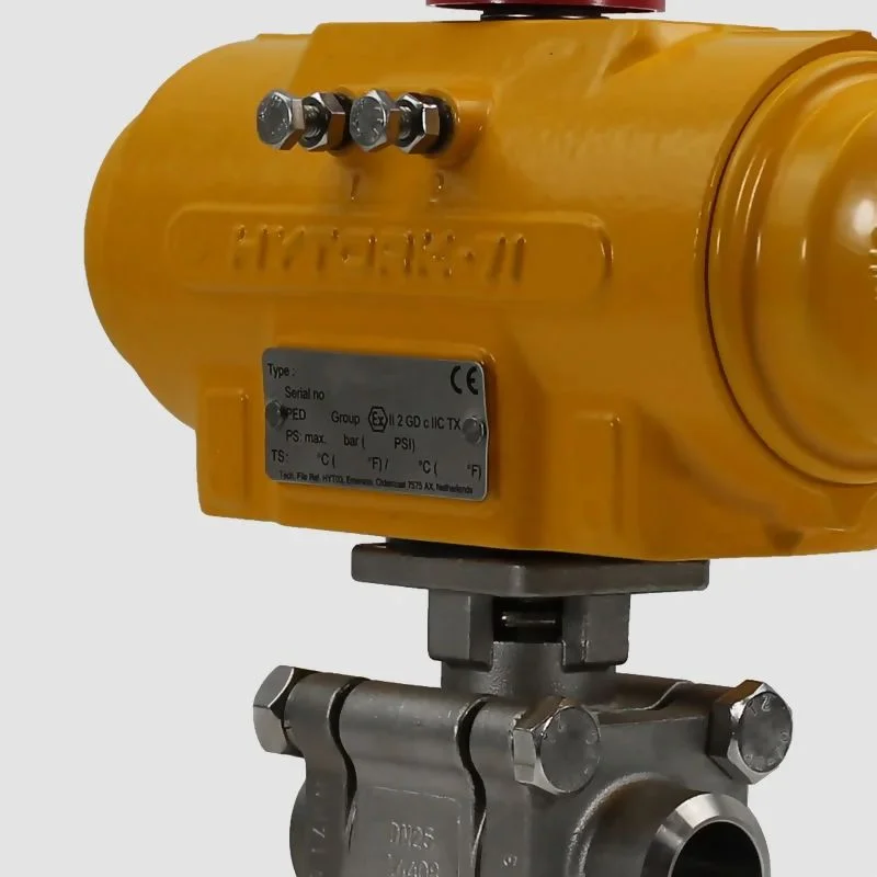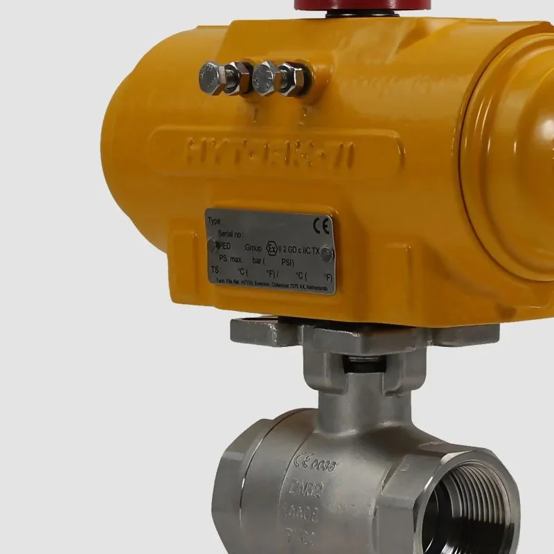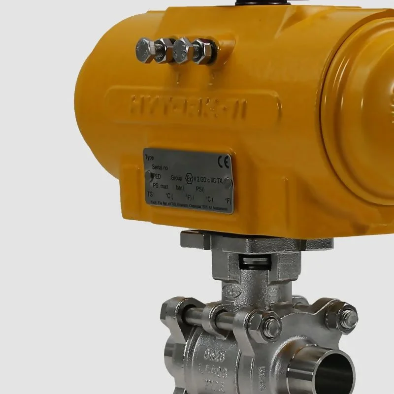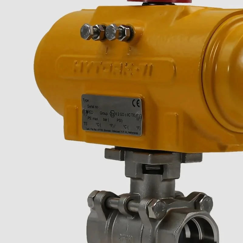 Hytork Actuated Ball Valves are high-performance valves equipped with pneumatic actuators, designed for efficient control of fluid flow in various industrial processes. They are known for their reliability, durability, and precise flow regulation.