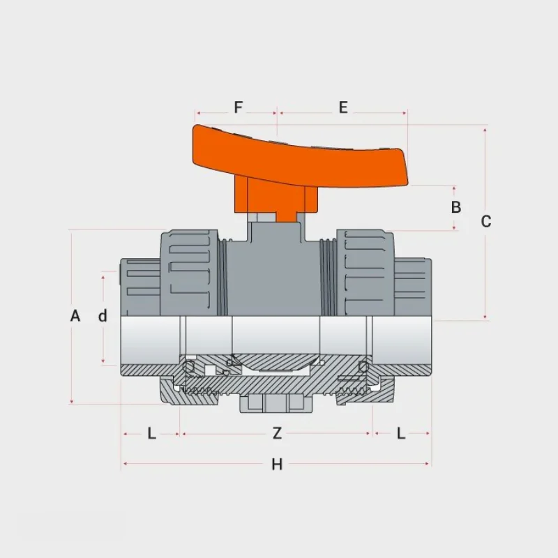 Key features and benefits of PVC Manual Industrial Double Union Ball Valves - Plain Ends (FPM Seals)